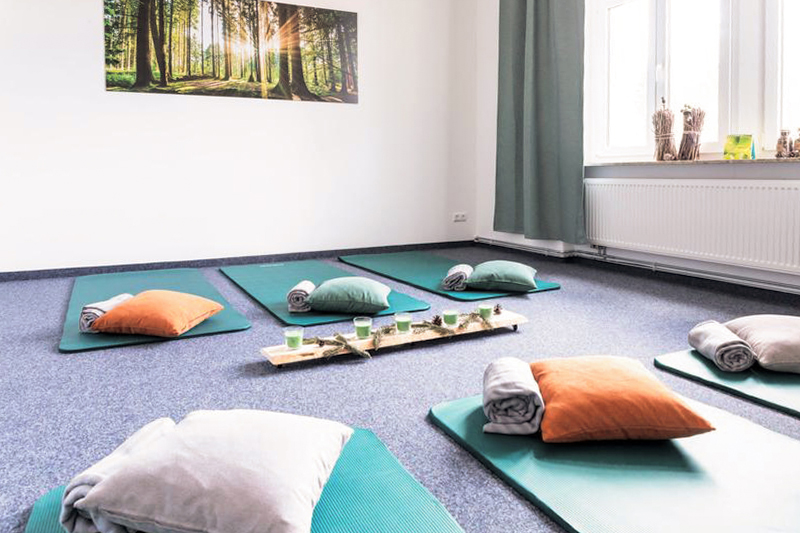 Dadurch können wir ein sehr vielseitiges Angebot für unsere Kurse und Veranstaltungen schaffen. Die Anordnung der Möbelstücken ermöglicht ein schnelles Umräumen und dient der optimalen Raumanpassung. So sind mit wenigen Handgriffen auch größere Sportgruppen, freier Tanz, Ballspiele, Rückenschulen, etc. möglich.